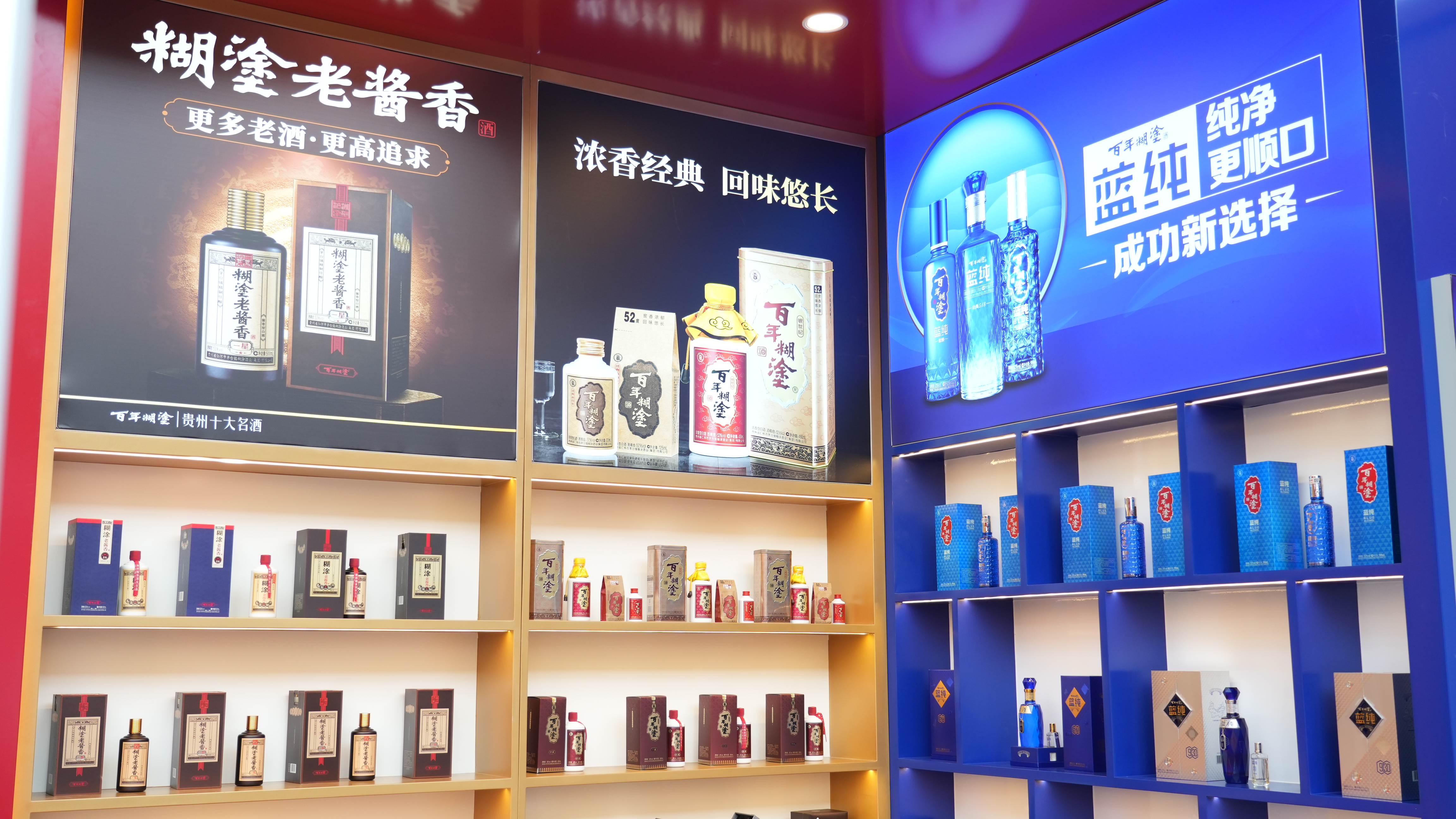 本次糖酒會,百年糊涂展區(qū)設(shè)于環(huán)球名酒薈首發(fā)位T3展區(qū),是整個展區(qū)中的黃金區(qū)域,面積有100平方,相比去年春糖,面積更大,位置更突出,投入也更多。走進展區(qū),首先映入眼簾的是百年糊涂的醬酒隊伍:代表中高端定位的“百年糊涂老醬香醬號系列”,主打國民醬酒旗幟的“糊涂老醬香”一星和三星系列,以及高端支線“糊涂醬酒”“師藏”等等;這支隊伍陣容齊整,形成了準(zhǔn)確的品牌矩陣。