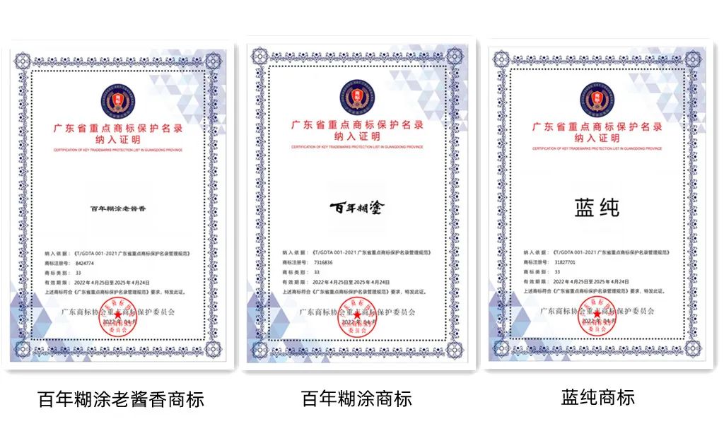 今年,廣東省白酒品牌——百年糊涂酒,其中的“百年糊涂”、“百年糊涂老醬香”以及“藍純”三項商標脫穎而出,一并納入《廣東省重點商標保護名錄》,以下簡稱“名錄”,備受關注。