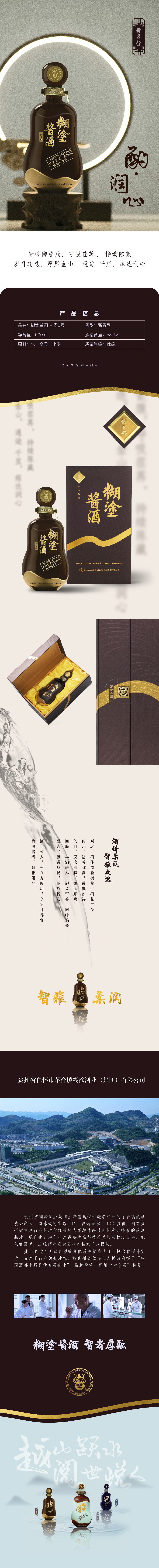 返回列表 糊涂醬酒貴8號(hào) 貴8號(hào) 香型:醬香型 酒精度:53%vol 凈含量:500mL 產(chǎn)品描述: 糊涂醬酒—貴8號(hào)產(chǎn)品嚴(yán)苛遵循高端醬酒的大曲坤沙工藝,吸納四季靈氣,用老陶壇貯藏作為基酒,歲月輪轉(zhuǎn)8個(gè)春夏秋冬,酒體微黃,加以陳年老酒調(diào)配,一口潤(rùn)心,渾然天成,禮盒選用深咖色,內(nèi)部搭配黃絲絨托映珍貴陶瓷酒瓶,厚聚金山,適合陳藏、高端政商務(wù)宴請(qǐng),智者之選。 線上購買: 天貓 京東 產(chǎn)品詳情 推薦產(chǎn)品 百年糊涂酒-經(jīng)典小百年 經(jīng)典小百年 百年糊涂酒百福6# 百福6# 百年糊涂酒 藍(lán)純經(jīng)典 藍(lán)純經(jīng)典 返回頂部